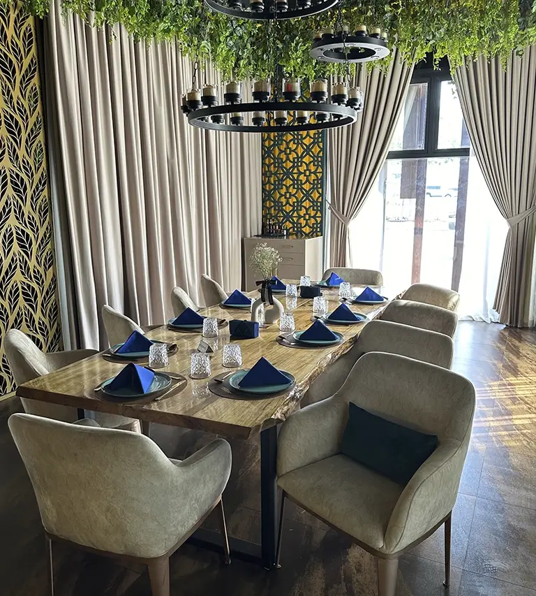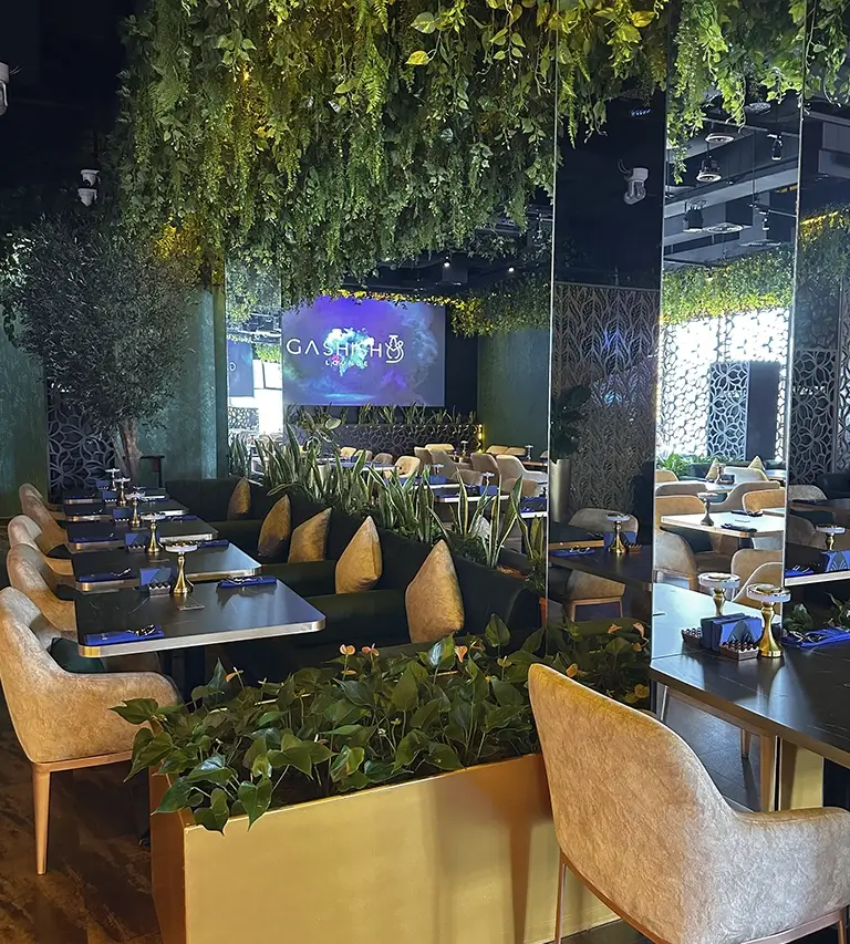لقد دمجنا ذلك المكان في الحياة بحيث يمكن لكل ضيف الاستمتاع ليس فقط بالأطباق اللذيذة، ولكن أيضًا بالتواصل الفريد في بيئة ممتعة. Gashisha lounge ليست مجرد مكان لتناول الطعام، بل هي منصة لخلق ذكريات فريدة من نوعها، حيث تصبح الاجتماعات مميزة وكل زيارة هي متعة لجميع الحواس. نحن فخورون بنتيجة عملنا وندعوكم للاستمتاع بأجواء الراحة والذوق الرفيع في مطعمنا الفريد.